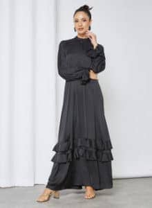 الخيار الأخير من سيفي هو فستان سهرة أسود طويل يناسب أصحاب الجسم الممتلئ تعرضه سيفي ضمن مجموعة فساتين