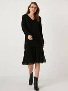 لكل محبي اللون الأسود الأنيق إليكم هذا الفستان من ال سي ويكيكي باللون الأسود بستايل مودرن راقي ومميز عن باقي الموديلات، يمكنك ارتدائه مع هاف بوت أسود وحقيبة سوداء لامعة، سعر الفستان ٦٦ ريال سعودي مع خدمة الاستبدال مجاناً خلال مدة لا تتجاوز الأسبوعين من تاريخ الاستلام، اطلبيه الآن بثمن أقل عند استخدام كود خصم ال سي ويكيكي.